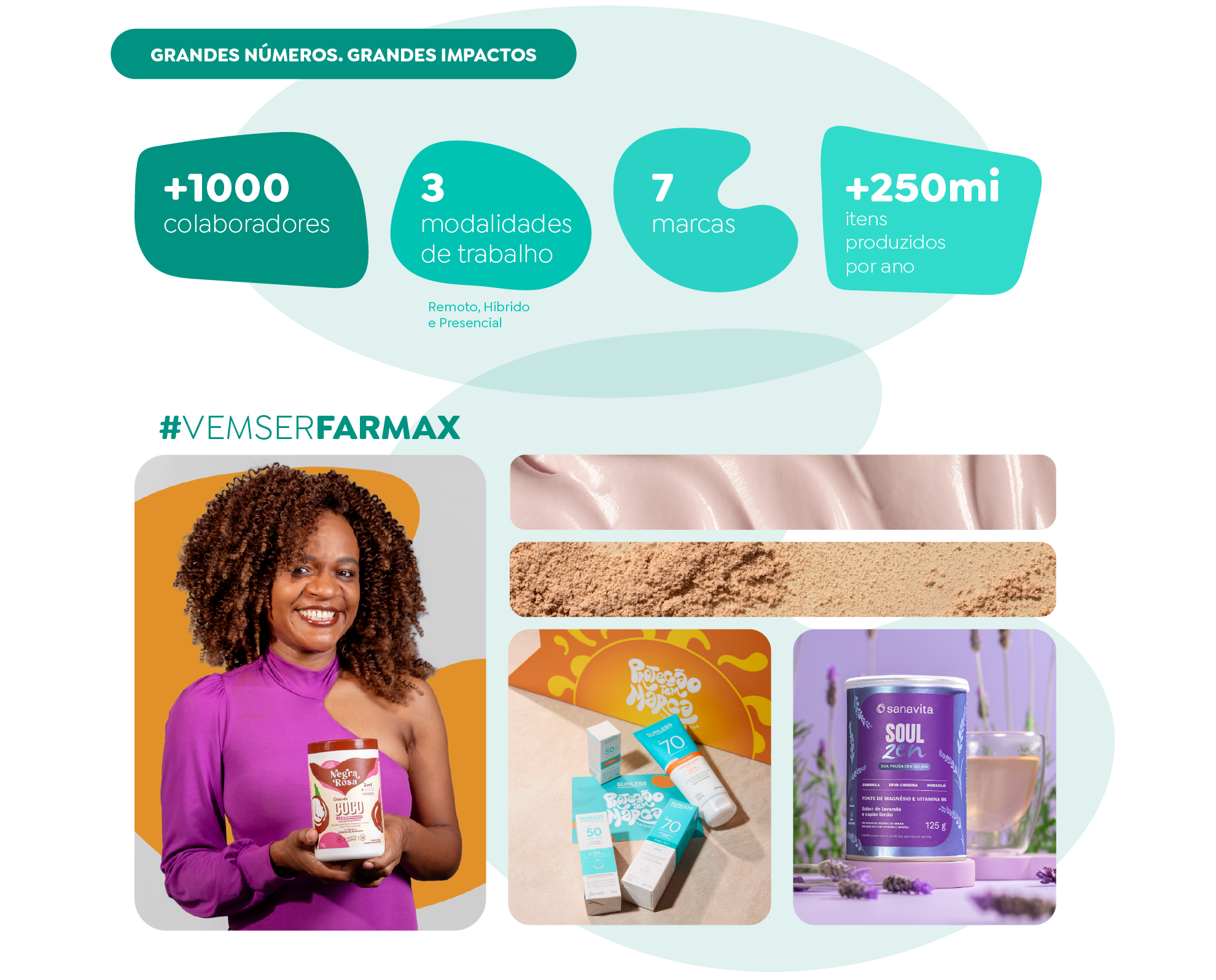 Crescemos impulsionados pela inovação, pela sustentabilidade e, principalmente, pela nossa gente: o maior ativo do Grupo Farmax. Aqui, evoluir faz parte da essência porque acreditamos que o cuidado começa dentro de casa e se expande para o mundo, gerando impacto positivo, inclusão e transformação todos os dias.
